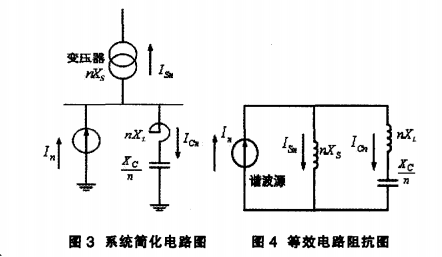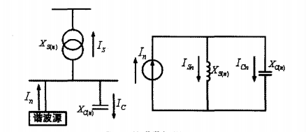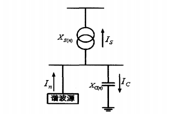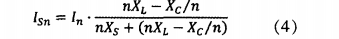 從圖中可以看出,諧波電流部分流經XS(n),部分流經XC(n),回路阻抗為: