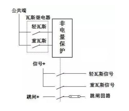 由油、氣、溫等非電氣量組成的變壓器保護稱為非電氣保護。主要包括瓦斯保護、壓力保護、溫度保護、油位保護和冷卻器全停保護。非功率保護根據現場需要跳閘或發送信息。