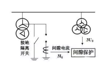 間隙保護是通過流經變壓器中性點的間隙電流3I0和母線PT開口三角電壓3U0來實現的。