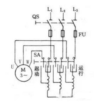 在轉速上升到一定值後,將手柄擰至“運轉”位置,電動機定子繞組直接與三相電源接通,切斷自耦變壓器,電動機全壓運行。